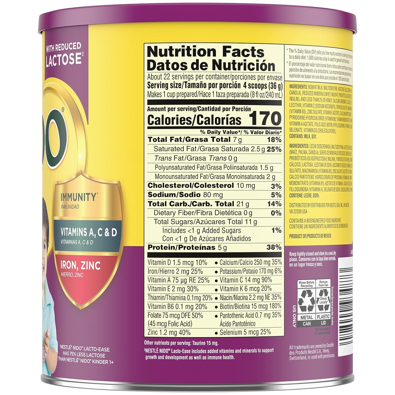 Nestle NIDO Lacto-Ease Toddler Powdered Milk Beverage - 28.2 Oz Canister - Toddler Drink Mix (Pack of 4)