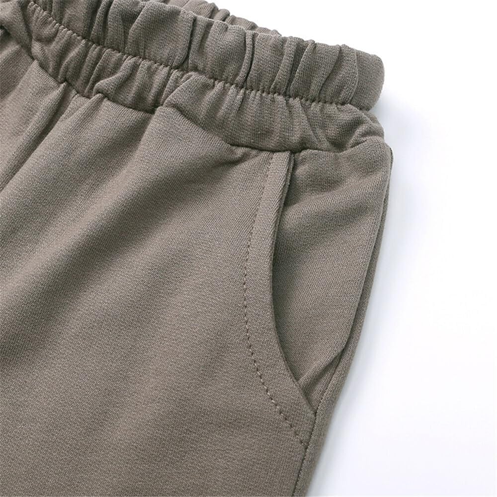 QueenLine 10Sets Bulk Items Wholesale Children Sets Long Sleeves Pullover Tops Hoodie + Shorts Two Piece Sets Casual Solid Tracksuits Brown 130cm