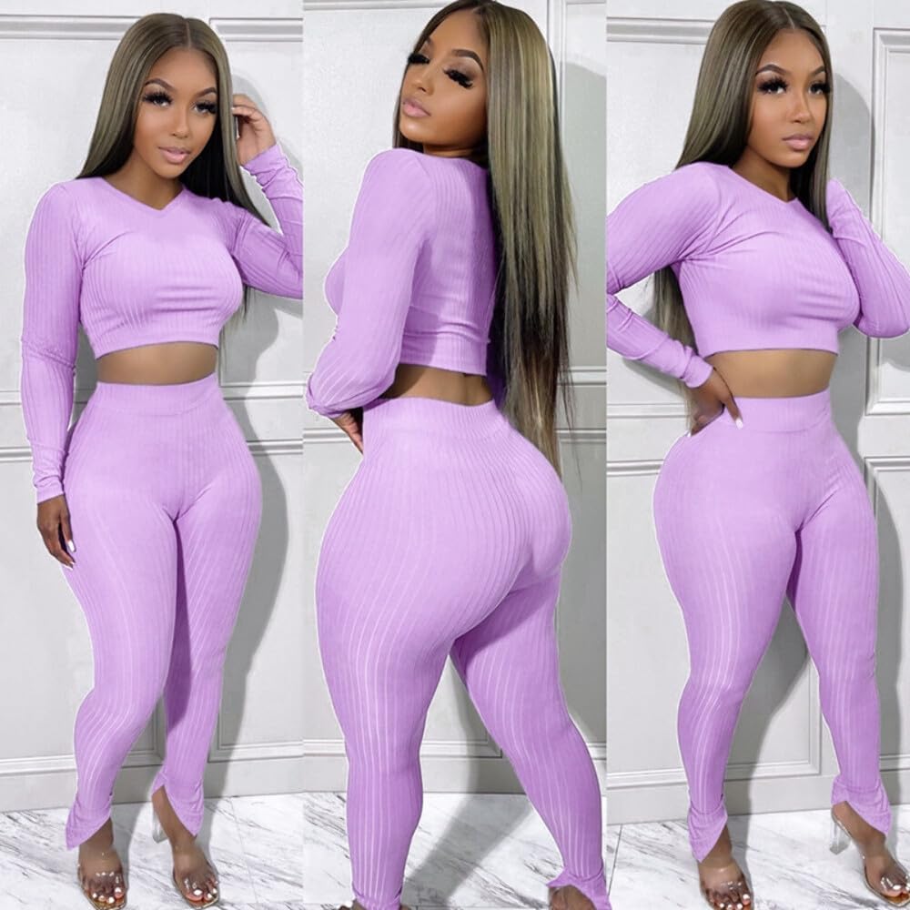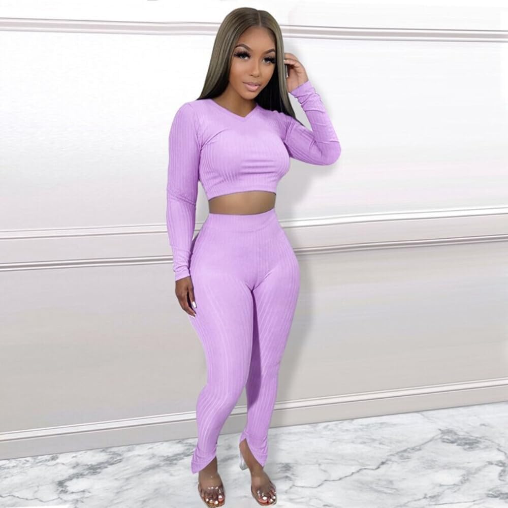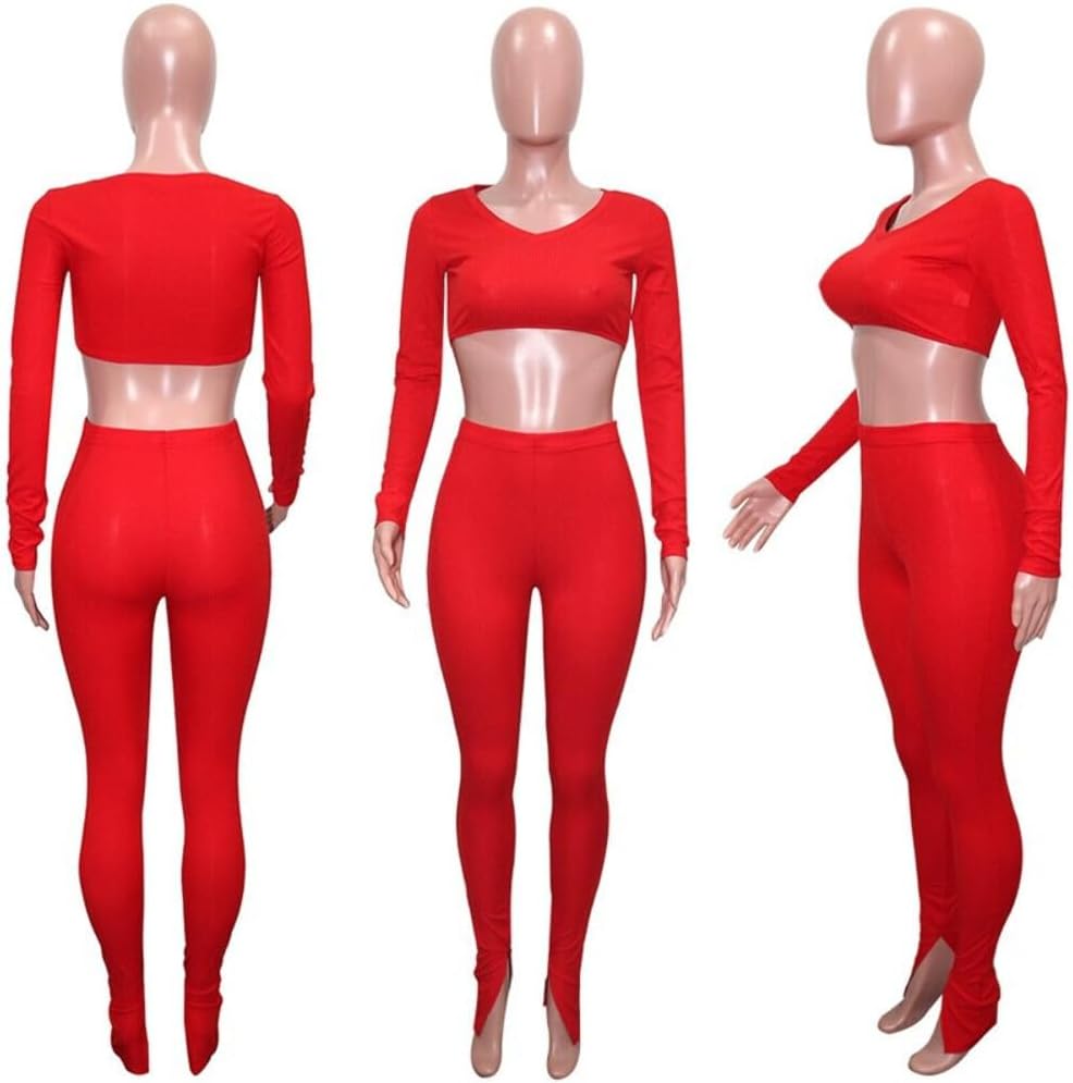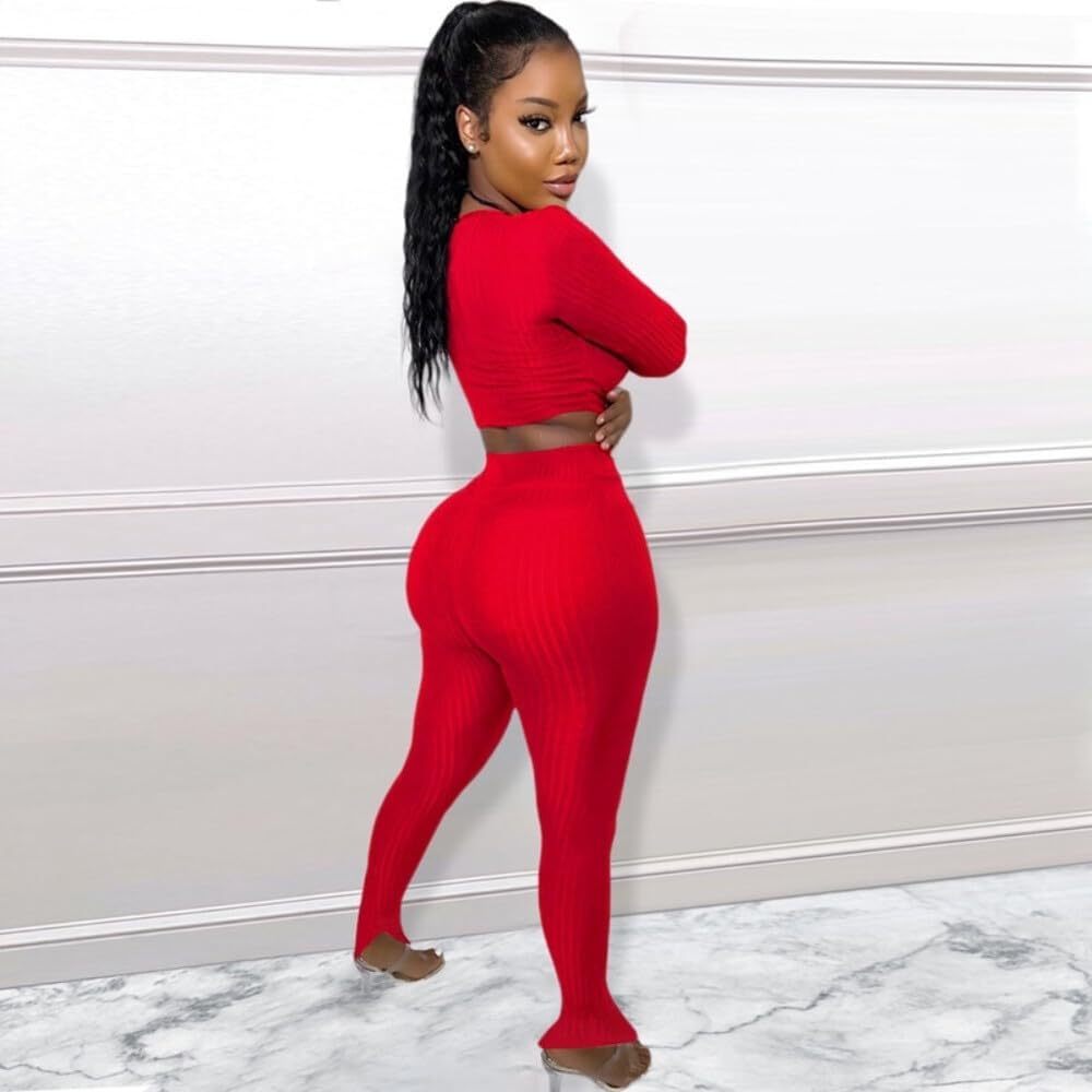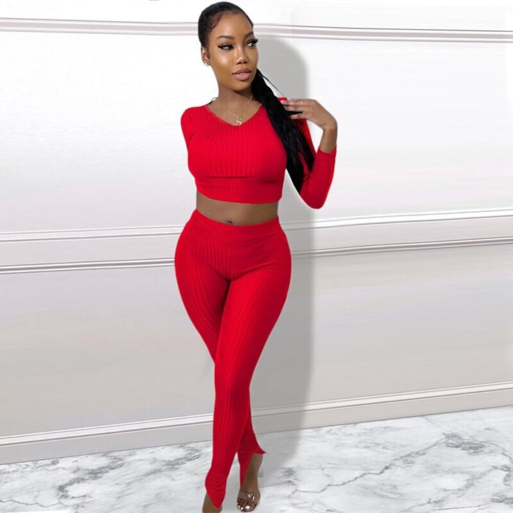 QueenLine 10pcs Wholesale Items for Business In Bulk Clothes Solid Knit Ribbed Two Piece Sets Women Fall Outfits Crop Top + Leggings Tracksuit Red L